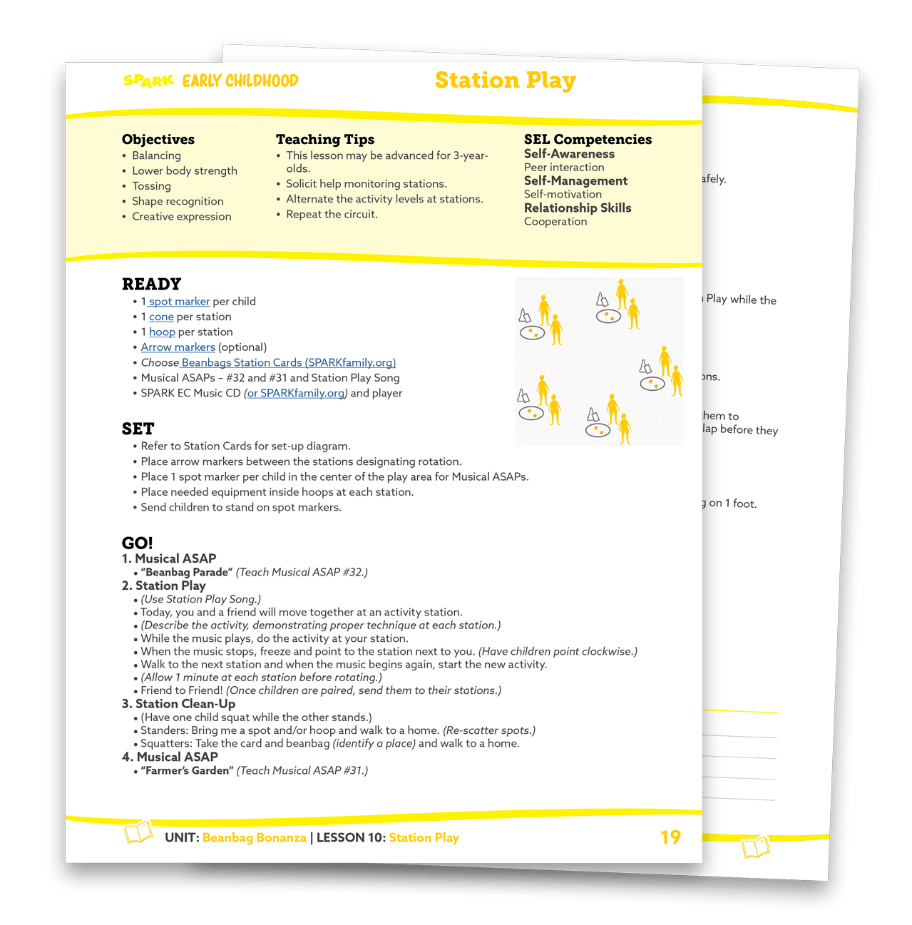 One of 6 types (art, literacy, math, music, nutrition, and science) of Academic Integrations included in each lesson. Use as academic enrichment tools before or after a SPARK lesson, or during circle time.