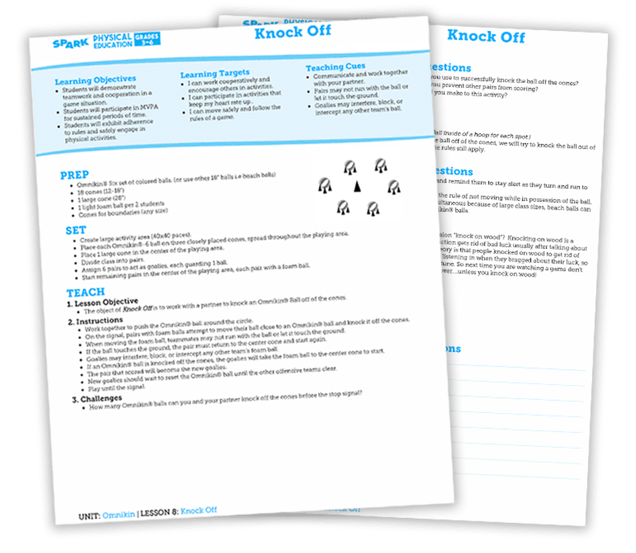 The SPARK 3-6 curriculum, available in a new enhanced lesson plan format, includes more than 600 standards-aligned, high MVPA, easy to learn, and easy to teach activities that your students will love.