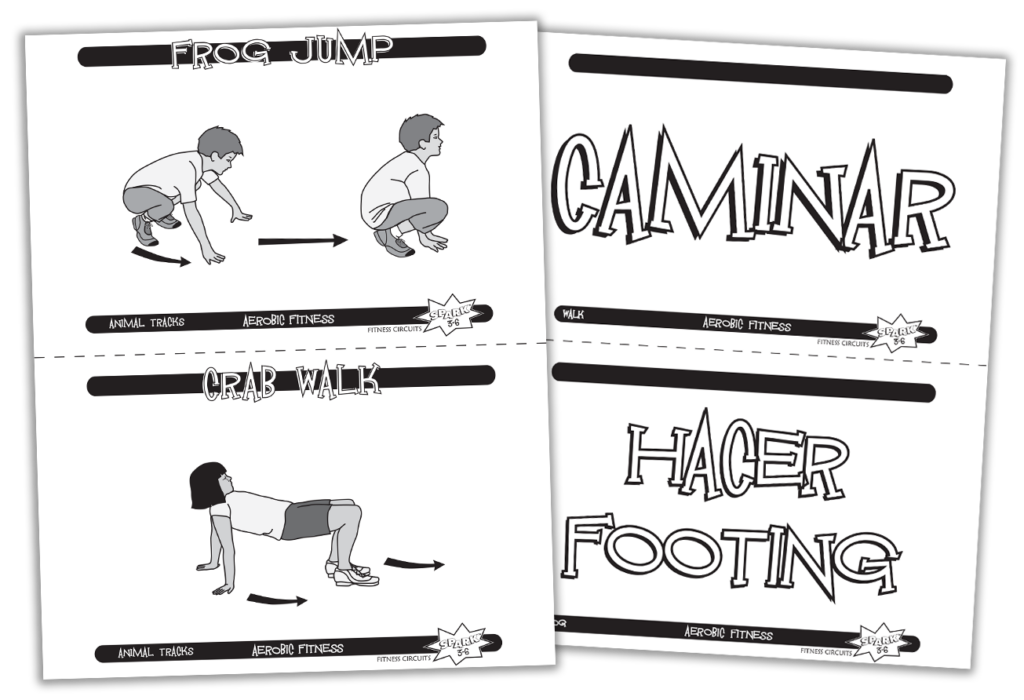 Skill Cards may be used as teaching aides, for stations in a circuit, or in combination to create movement routines. English/Spanish